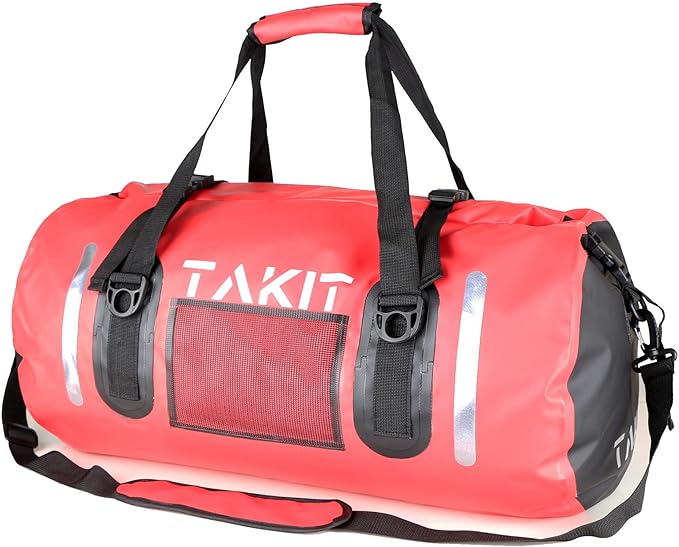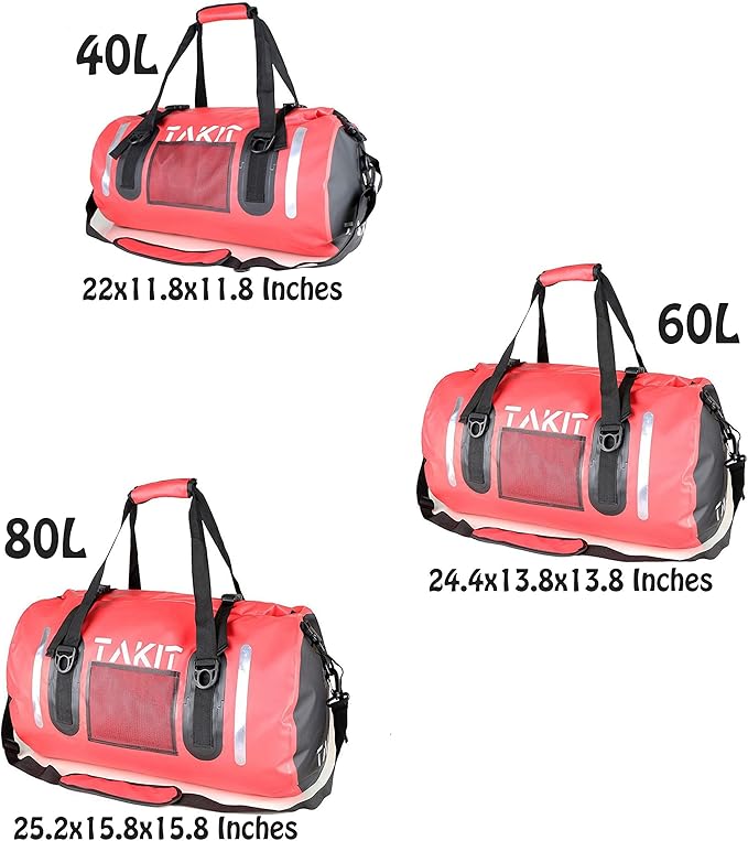 Waterproof Duffle Bag Travel Dry Bag 500D PVC for Motorcycle Tail Kayaking Rafting Boating Swimming Camping Hiking Beach Fishing (Red, 80L)