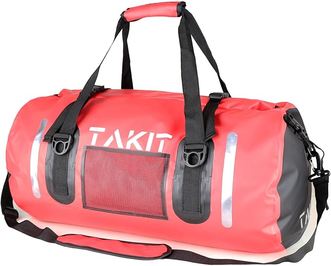 Waterproof Duffle Bag Travel Dry Bag 500D PVC for Motorcycle Tail Kayaking Rafting Boating Swimming Camping Hiking Beach Fishing (Red, 60L)