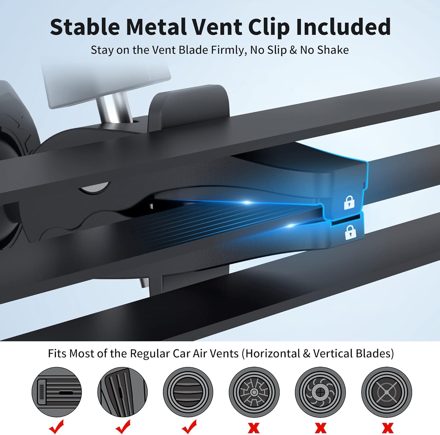 PROfezzion Suction Cup & Vent Clip Combo Magnetic Phone Holder Compatible with MagSafe on Car Truck Windshield, Dash or Vent for iPhone 16 15 14 13 Pro Max, Mag-Safe Case & All Phones [Aluminum Rod]