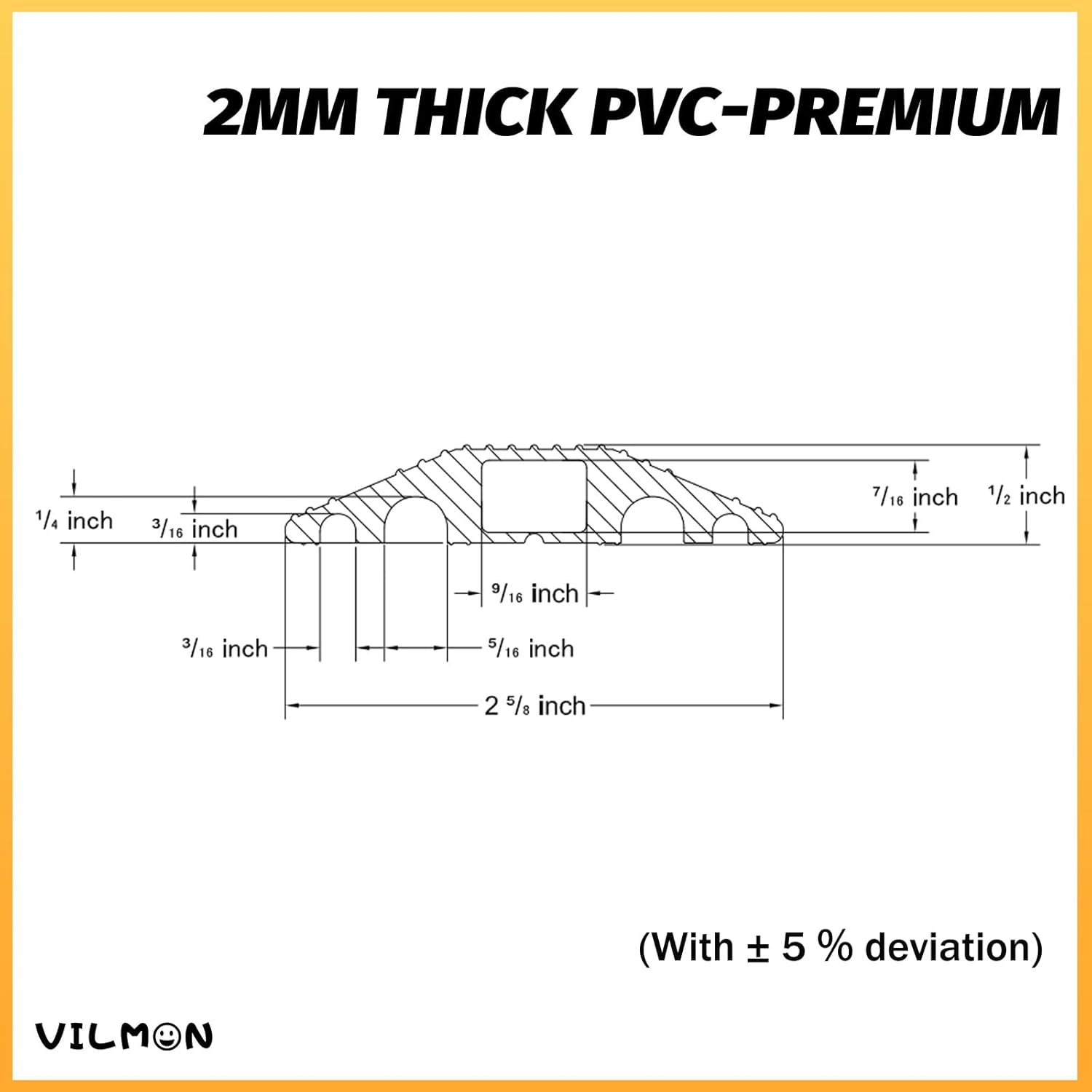 - Middle Channel Design : PMiddle channel size 0.53" (W) x 0.38" (H),This cord cover is designed with 5 holes, the large hole in the middle is 0.53*0.38 inches, and the 4 small holes on both sides have a radius of 0.4 in and 0.17in, which can accommodate smaller-sized wires such as data cables.Due to the soft nature of PVC, there is a slight deviation (0.03mm) in the aperture of the trunking coil, but it does not affect normal use