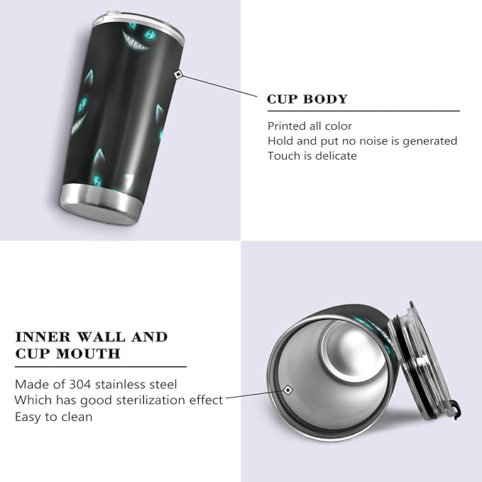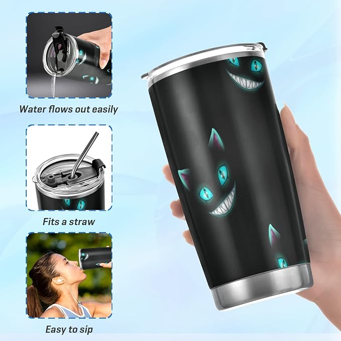 xigua 20oz Tumbler with Lid and Straw, Vacuum Insulated Stainless Steel Tumbler, Reusable Double Wall Travel Coffee Mug (Cheshire Cat Texture)