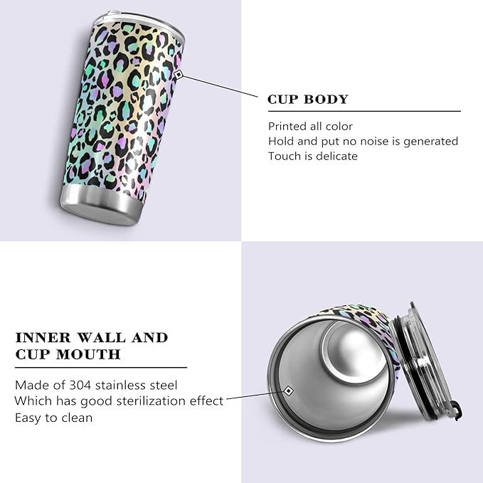 Tumbler Cute Neon Gradient Leopard Print Insulated Office Coffee Cup Back to School Beverage Container Travel Mug with Straw and Lid Double Wall Stainless Steel 20oz