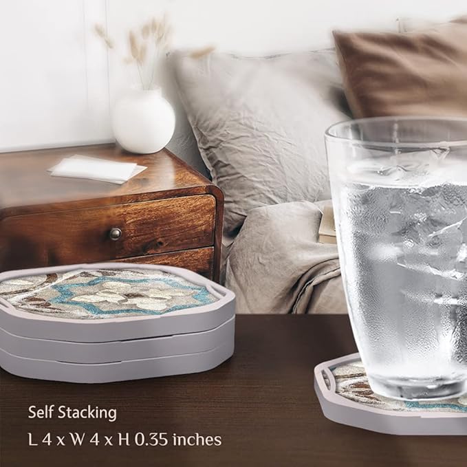 - FUNCTIONALITY - Avoid condensation rings, drips and puddles on tabletop; Prevent sticking, sliding, skidding and leaving marks or stains; Reduce excess noise for a quieter; Non-breakable, reusable, and washable; Protect counters, wooden desks, bedside furniture, nightstands in your apartment or house from scratches; Slip resistant on various surfaces like countertop or desktop which made of marble, stone, slate, ceramic, leather, agate, sandstone, geode, rubber, plastic, cork, or bamboo
