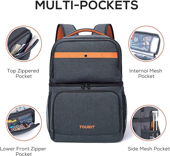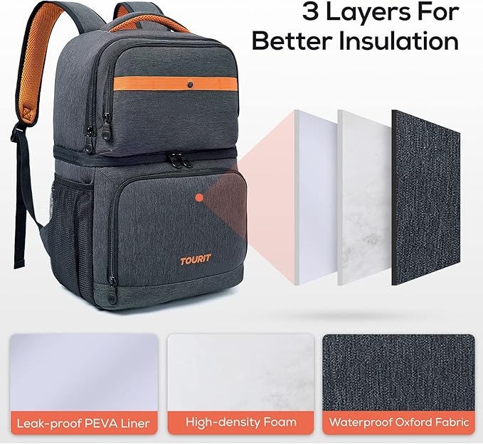 TOURIT Backpack Cooler with Double Decks, Insulated Cooling Bag for Lunch, Waterproof Lightweight for Men to Camping, Picnic, Hiking, Beach Park
