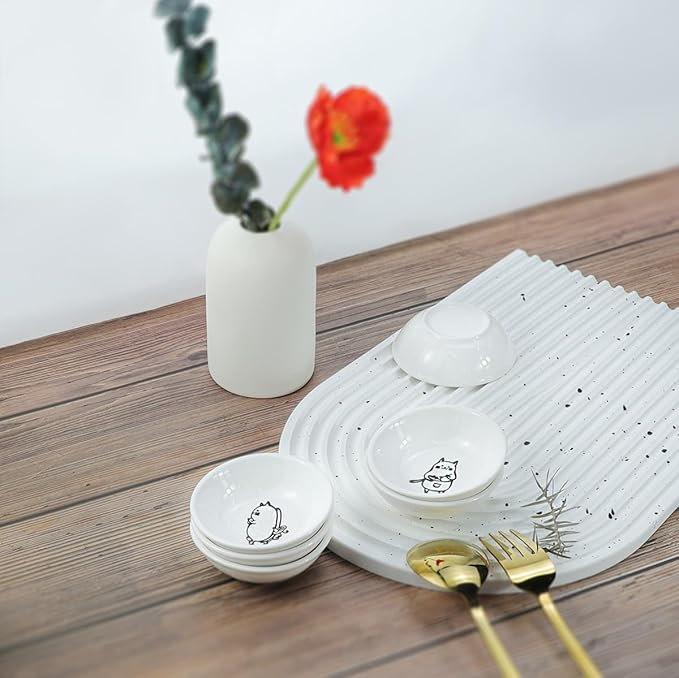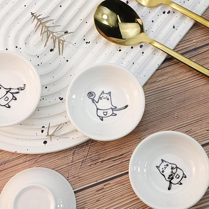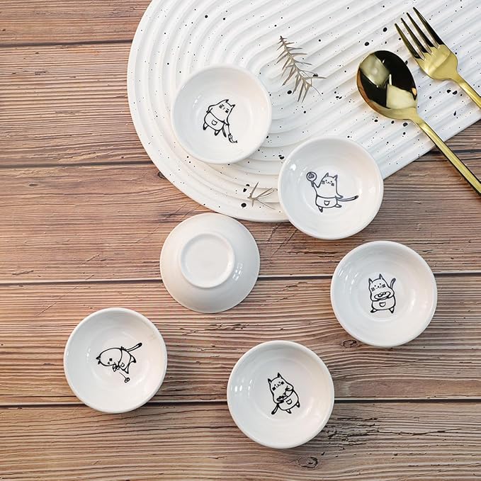 Super Cute Chef Cat Ceramic Sauce Dish/Seasoning Dish/Sushi Soy Dipping Bowl/Appetizer Plates/Serving Dish for Kitchen Home(Set of 6)