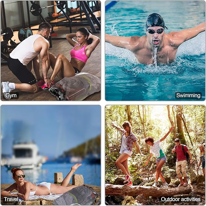 • FOLDABLE ZIPPER POCKECT & EASY TO CARRY: Extra zipper pockets of our mesh drawstring backpack make it easy for you to pack phones, keys. Besides,you can easily fold our mesh beach bag into the zipper front bag, which takes up hardly any space that can easily fit in a purse, pocket.You will always have a mesh swim bag with you whether you go to gym or beach trip.Our mesh drawstring bag is perfect for gym bag,swim bag,basketball bag,soccer bag,sports bag,beach gear bag.