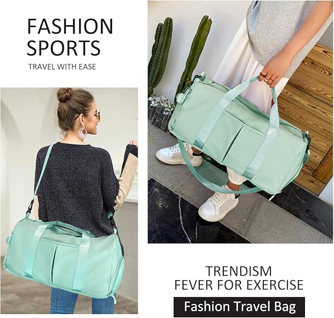 ZGWJ Sports Gym Bag with Wet Pocket & Shoes Compartment, Waterproof Shoulder Weekender for Women and Men Swim Travel Lightweight easy Carry on Green