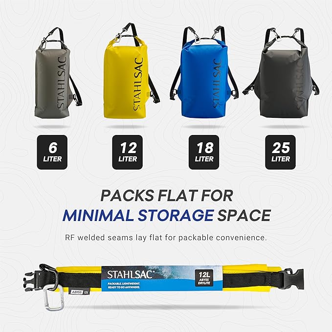 Stahlsac Abyss Drylite Dry Bag 18L in Blue | Durable Waterproof Bag | Lightweight Dry Bag Backpack for Boating, Hiking, Kayaking, & Rafting | Tested for Enhanced Durability | Removable Straps