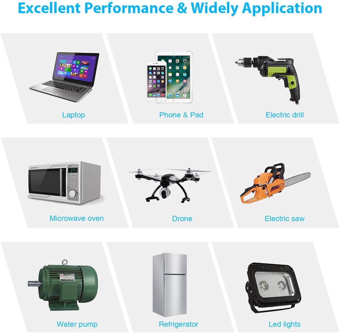 - [2000 Watt Inverter] 12V to 110V inverter generates pure sine wave from, can stably provide 2000W of continuous with peak surge of 4000W power. DC to AC Power inverter‘s conversion efficiency is greater than 90%, minimizing conversion losses. 2000w Inversor de corriente para coche