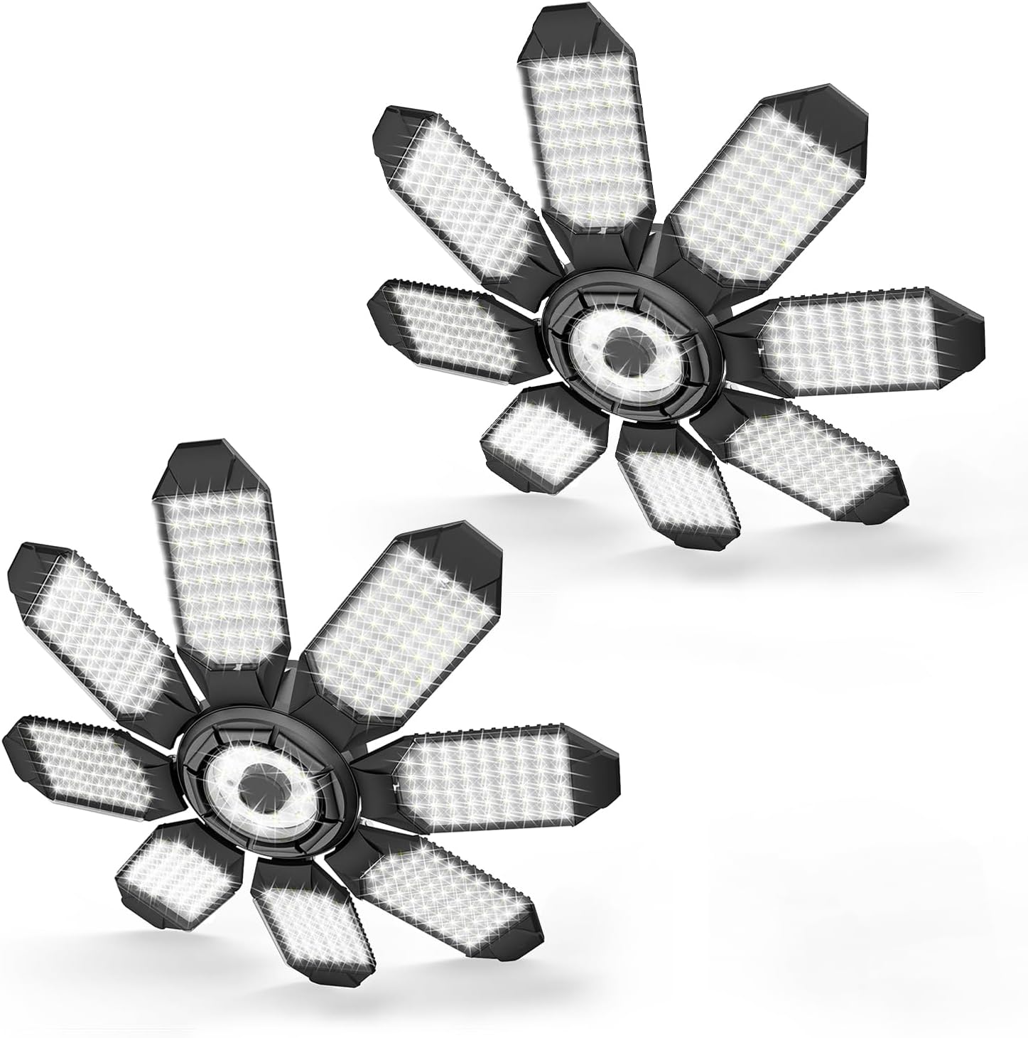 Garage Lights - 40000LM Super Bright Garage Lights Ceiling Led w/ 8 Deformable Panels Compatible for E26/E27 Screw in Socket Garage Lighting Bulb for Barn Basement Shops Attic - 2Pack