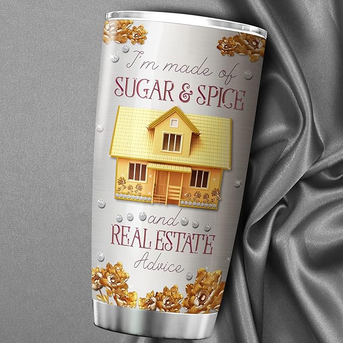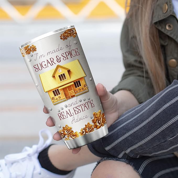 ZOXIX Realtor Coffee Tumbler Stainless Steel Mug With Lid 20oz Travel Cup Gifts For Realtors Female Flower Floral Housing House Girl Cute Tumblers For Women Salesperson Accessories