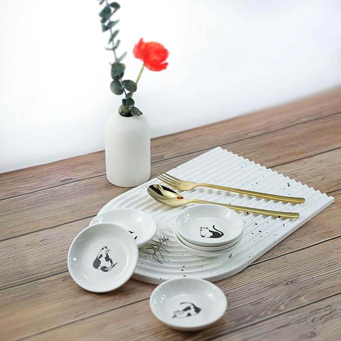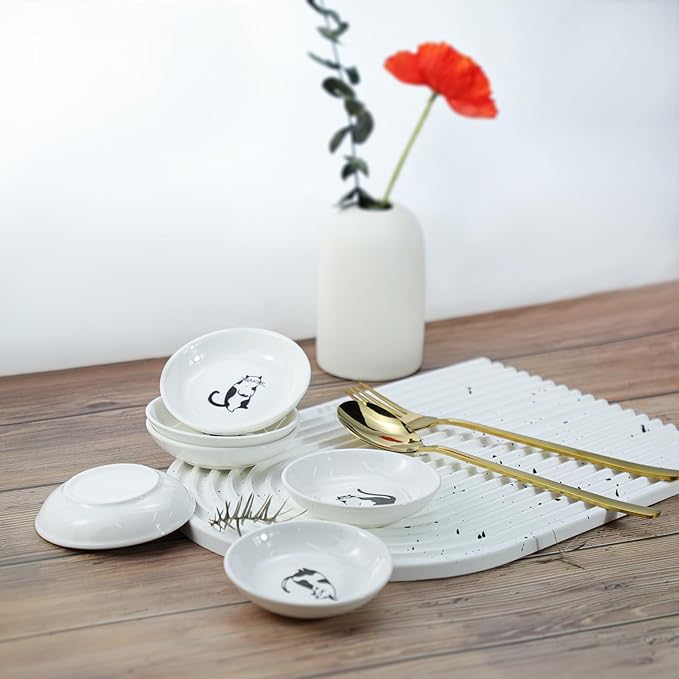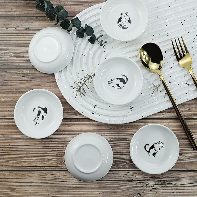 Super Cute Gentleman Cat Ceramic Sauce Dish/Seasoning Dish/Sushi Soy Dipping Bowl/Appetizer Plates/Serving Dish for Kitchen Home(Set of 6)