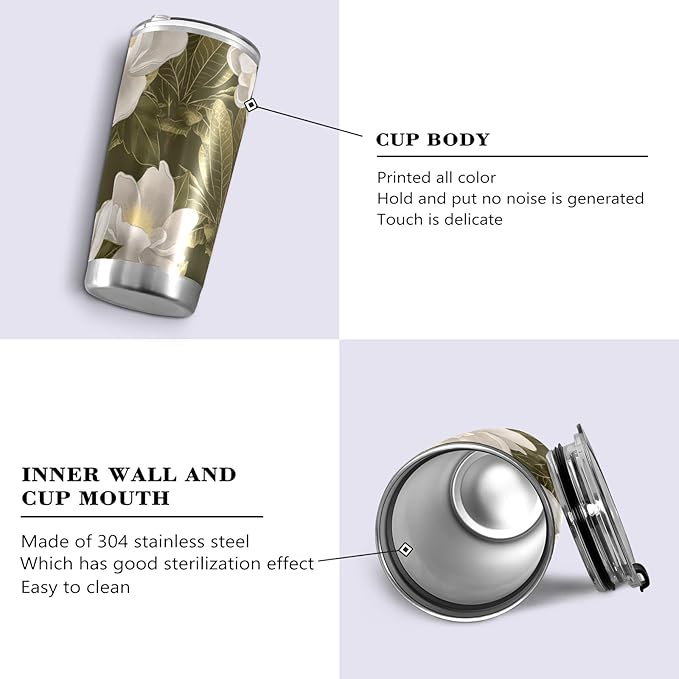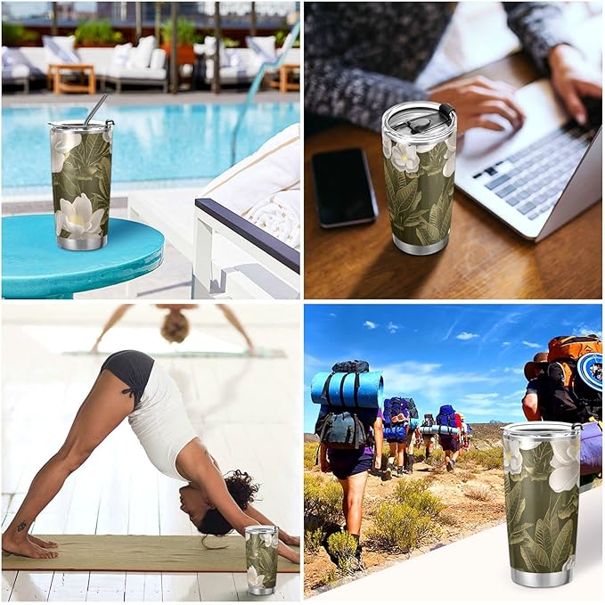 Tumbler Magnolia Flower White Insulated Coffee Cup Back to School Beverage Container Office Travel Mug with Straw and Lid 20oz