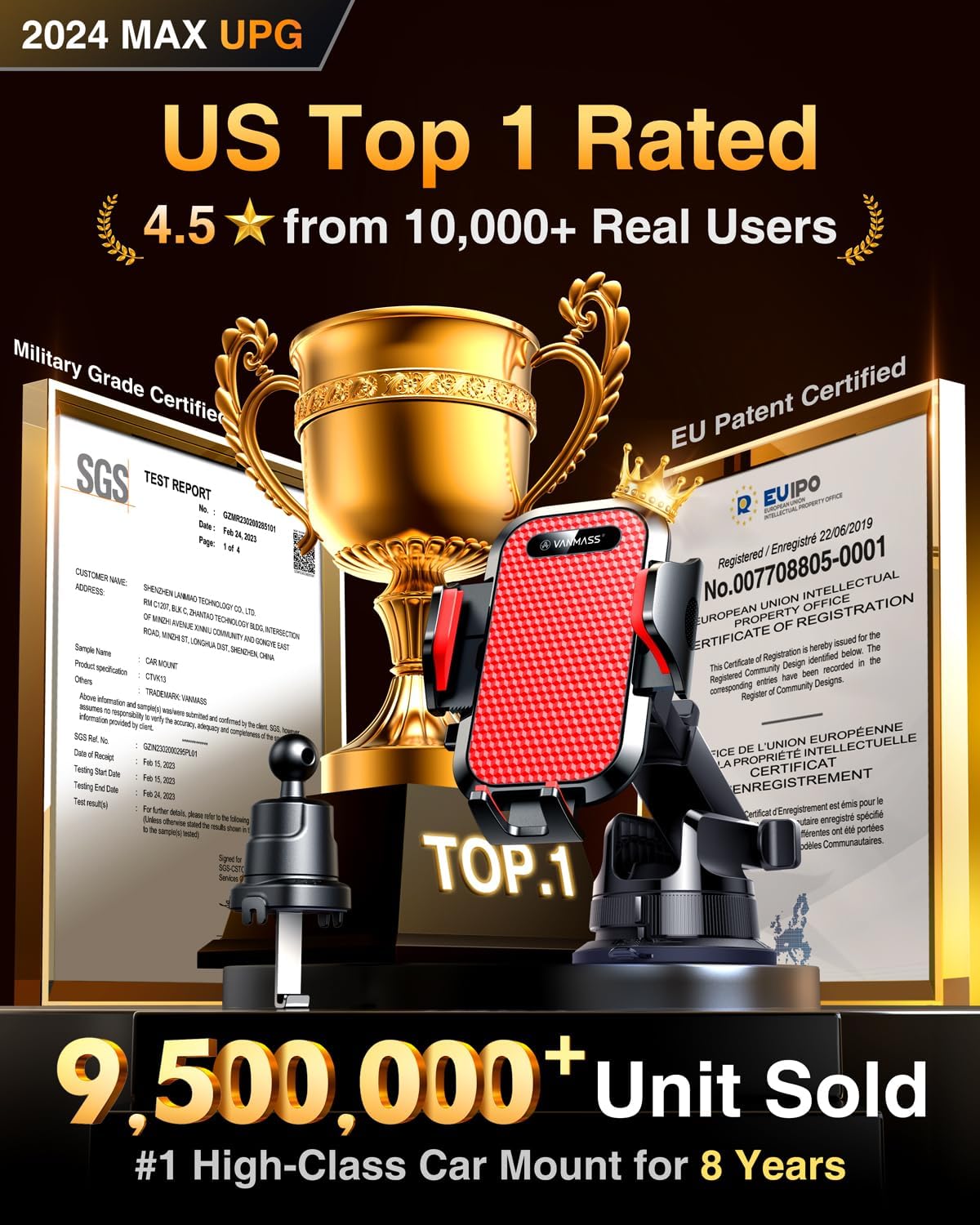 - 【True Military-Grade Certified, Upgraded Ultimate Car Mount】VANMASS, the leader in high-end car phone holder. Over the past 8 years, We have listened to the voices of millions of users, rigorously tested to MILITARY GRADE standards (stability, compatibility, flexibility, security, durability). Finally, we overcome all weaknesses to design the Ultimate Model that we are most satisfied with. This item obtained international military-grade shockproof certification No. GZMR220601855501