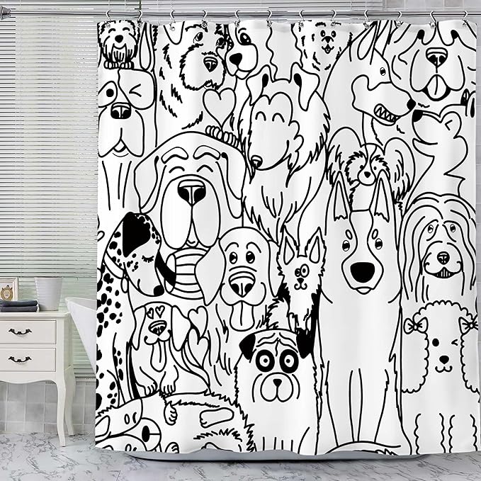 - ★UNIQUE DESIGN: Designed with Funny dogs, advanced pattern printing technology, the Black and white shower curtain image clearly, make your bathroom more fresh and have a new look.