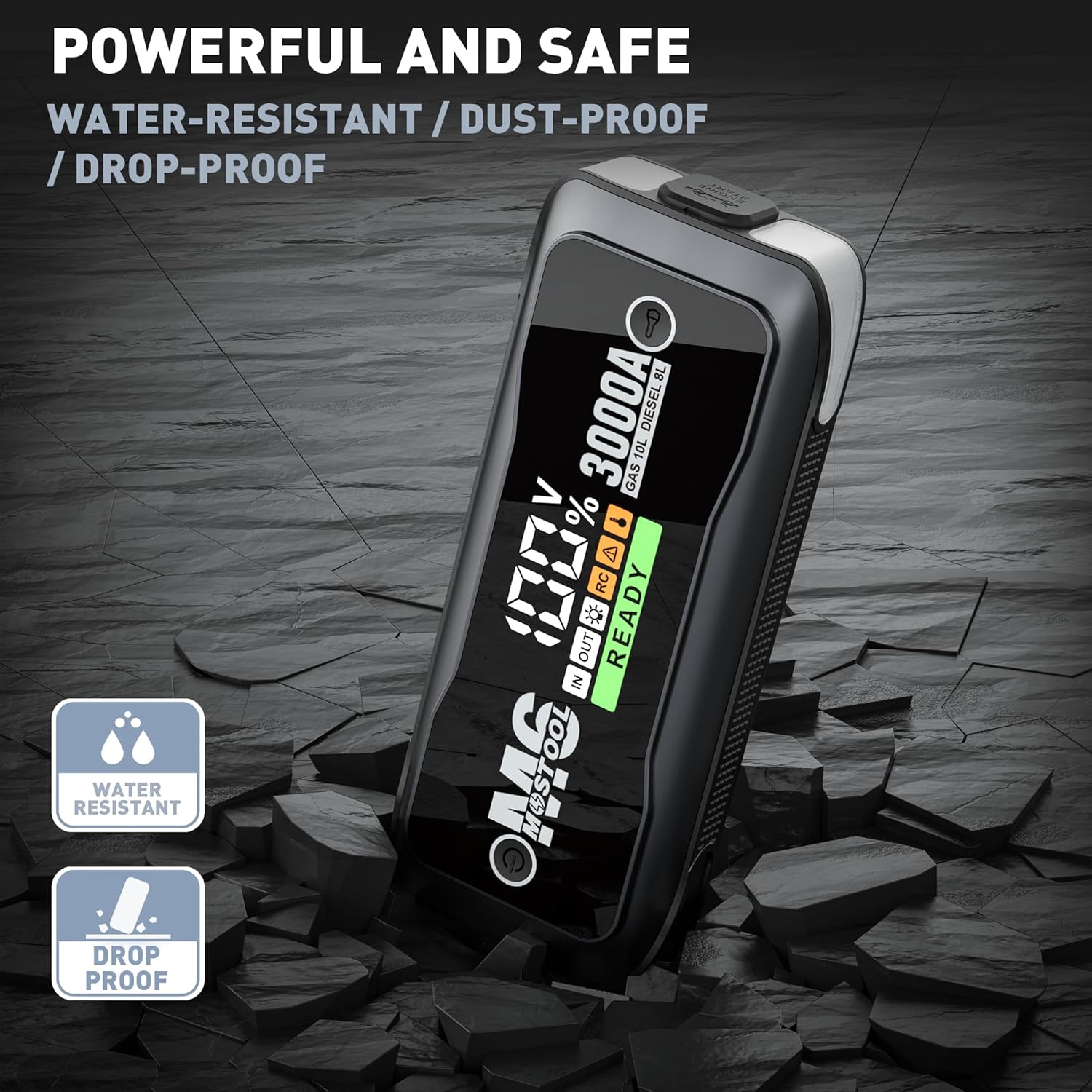 - 🚗【 Durable in All Conditions】MOSTOOL M6 emergency jump starter is built to perform in extreme weather, withstanding temperatures from -4°F to 140°F. Its rugged, heavy-duty casing is drop-proof, rainproof, and dust-resistant. Whether on the road or off-grid, this heavy-duty jump starter delivers dependable performance. One charge supports up to 60 starts and 24 months standby