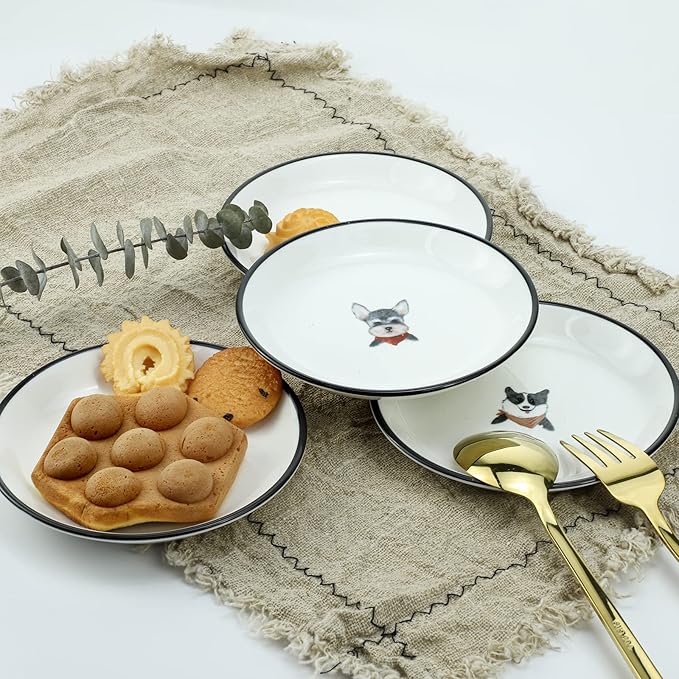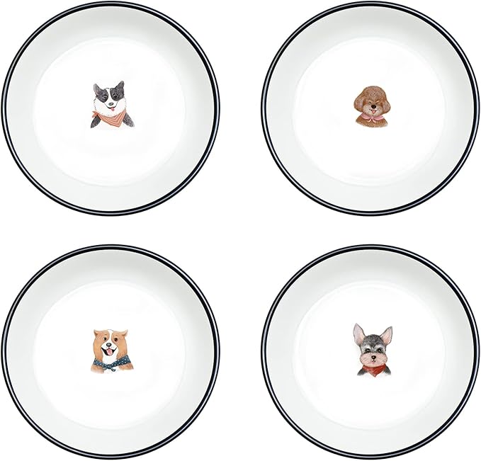 WAIT FLY 5 Inches Funny Retro Dog Pattern with Brush Strokes Ceramics Seasoning Dishes/Tea Bag Holders/Ketchup Saucer/Appetizer Plates/Seasoning Dipping Bowls, Set of 4