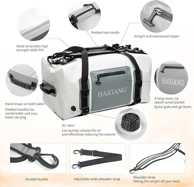 - 【Multi Functional】This waterproof duffel bag can be used for motorcycles, bicycles, kayaks, boats, and car. It's suitable for most outdoor activities, such as kayaking, paddle boarding, boating, motorcycle, rafting, fishing, traveling, biking, commuting, camping, hiking, diving and other adventures.