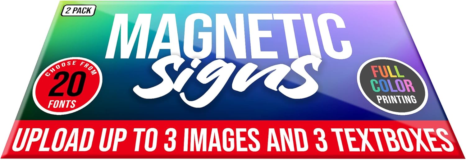 - CUSTOM CAR MAGNET - Promote your business on the go with our 12"x24" custom car magnets. Personalize with your logo, text, or design. These magnetic signs are great for branding cars, trucks, trailers, and storefront doors.