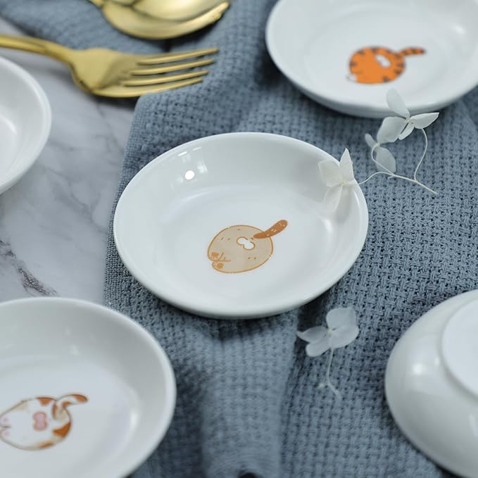 Super Cute Funny Cat Butts Ceramic Sauce Dish/Seasoning Dish/Sushi Soy Dipping Bowl/Appetizer Plates/Serving Dish for Kitchen Home(Set of 6)