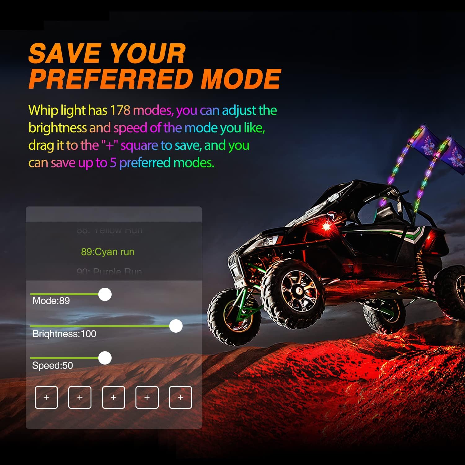 - 【Add Brake & Turn Signal Light】Whip lights come with extra red stop/brake light and amber turn signal light to add additional safety for your ATV UTV side by side.