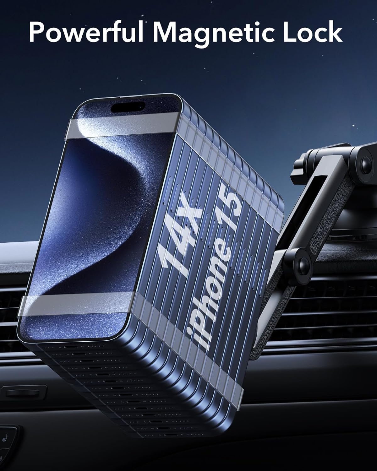 ESR Dashboard Magnetic Phone Holder for Car, for MagSafe Car Mount, Windshield Vacuum Car Mount for iPhone 16/16e/15/14/13/12, Samsung, Car Accessories, Charging Not Supported,2 Metal Rings Included