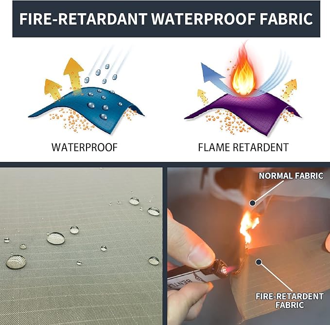 - FLAME RETARDANT MATERIAL. Don't wanna leave the campfire when you go to bed at night on a camping trip? The Penumbra tent is built with a stove jack opening for in-tent cooking and heating which means you get to bring the fire inside your tent. The tarp is constructed with polyester fabric with mildew inhibitor, fire-retardant, and water proofing so you can stay warm safely.