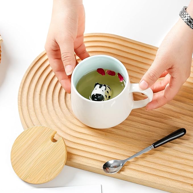- Creative 3D Animal Design Coffee Cup🥛:The cute mugs can be cleaned in the dishwasher or heated in the microwave. 400ml/13.5oz Capacity,This ceramic cup can hold tea, coffee, hot chocolate, and other hot beverages with ease. This cute cups with lid and spoon is cool gifts for kids.
