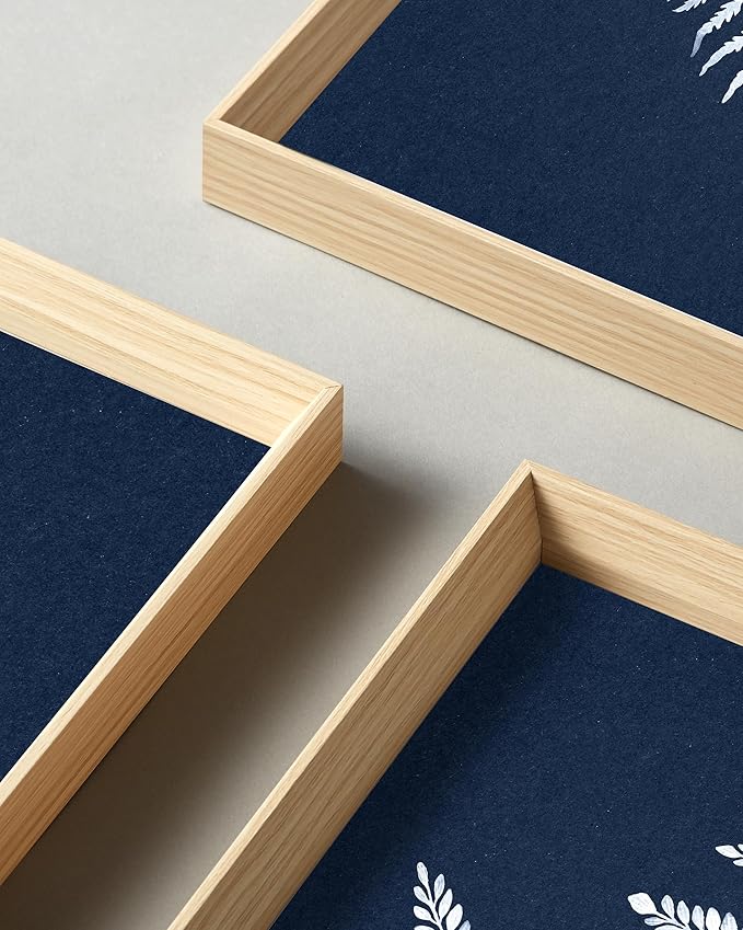 - BOTAINICAL WALL DECOR :This framed floral wall art set includes three framed pictures. Our botanical prints with meaty frames are simple wall decorations featuring a navy blue background with white lines outlining pearl-like ferns, bringing the joy of nature and a peaceful effect to any home or office, giving a sense of tranquility and sophistication.
