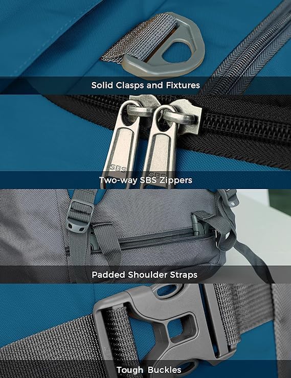 • Versatile Carrying Choices: Our travel duffel bag boasts detachable and adjustable straps, providing the option to wear it as a shoulder bag. Furthermore, two shoulder straps are cleverly concealed in the back zipper compartment, seamlessly transforming it into a backpacking backpack. The top handle allows effortless hand-carrying or convenient attachment to a suitcase. The side handles offer the flexibility to carry it alone or lift it jointly with a companion.