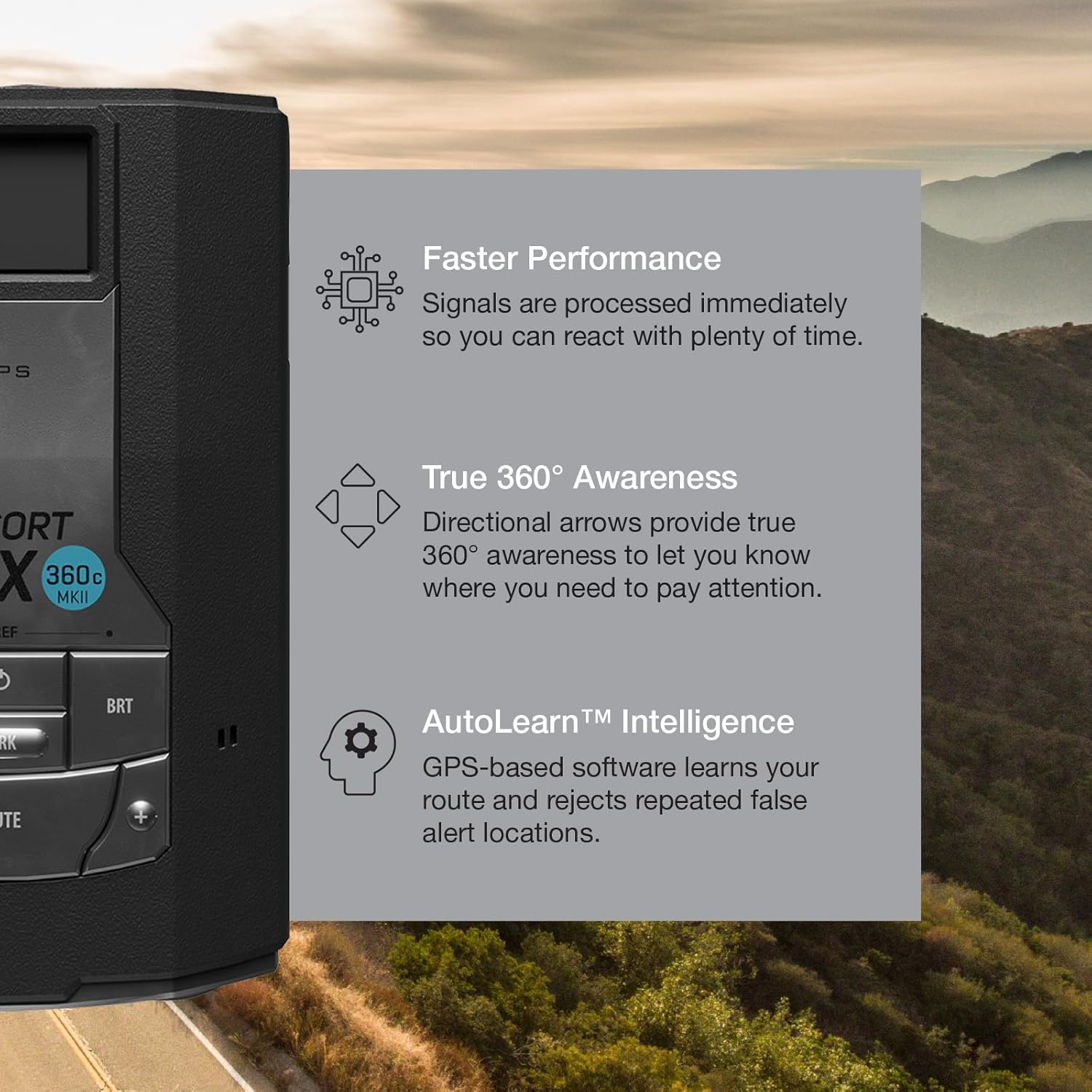 Escort MAX 360c MKII Laser Radar Detector & Escort Direct Wire Power Cord: Dual-Band Wi-Fi and Bluetooth, 360° Directional Arrows, Exceptional Range, Shared Alerts, Drive Smarter App, Black