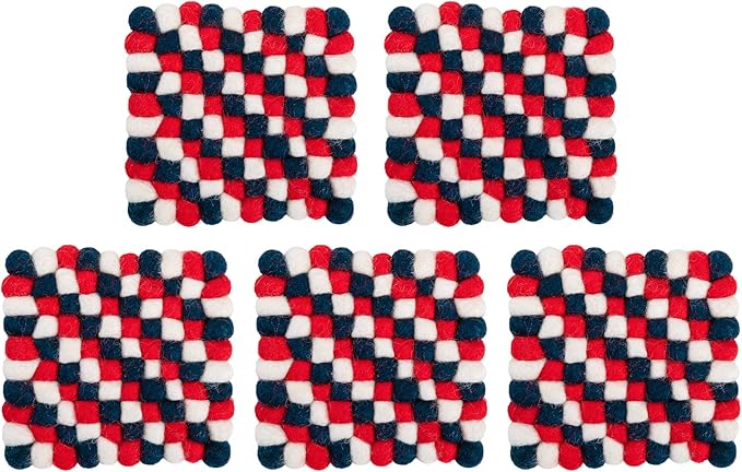 Square Felt Ball Coasters - 100% Merino Wool Table Coasters - Felt Coaster Pads, Absorbent Trivet for Drinks - Heat Resistant, Thick & Durable Hand Felted in Nepal by Woolygon- Multicolor - Set of 5