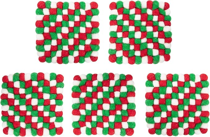 Square Felt Ball Coasters - 100% Merino Wool Table Coasters - Felt Coaster Pads, Absorbent Trivet for Drinks - Heat Resistant, Thick & Durable Hand Felted in Nepal by Woolygon- Multicolor - Set of 5