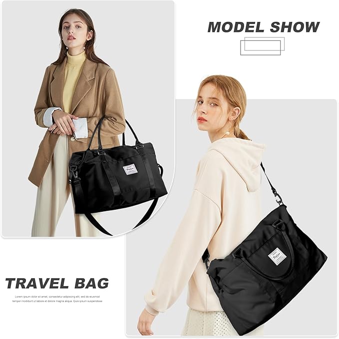 Weekender Duffel Bags for Women Men, Travel Totes Bag for Airplane, Cute Sports Gym Dance Overnight Luggage Bag with Wet Pocket, Carry On Hospital Bag for Labor and Delivery (Large Black)