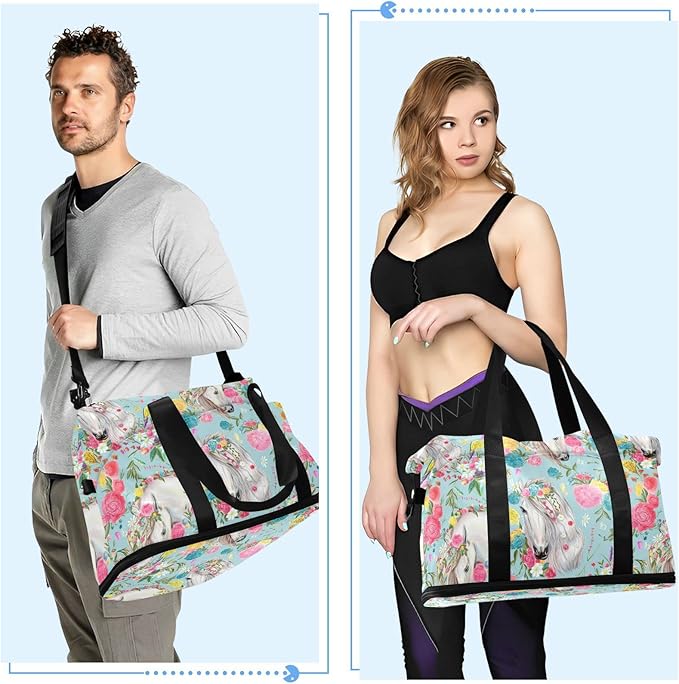 • Including: 1 x wet and dry separation sports bag(17.32 x 8.66 x 15.55 in), 1 x cosmetic bag(7.09 x 3.15 x 5.12 in)