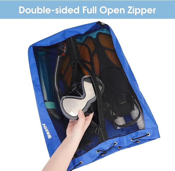 - Full-open design for easy access: Unlike traditional backpacks with a single top opening, our beach mesh backpack features two zippers that runs along the entire length of the backpack, allowing you to fully open it and easily access your gear.