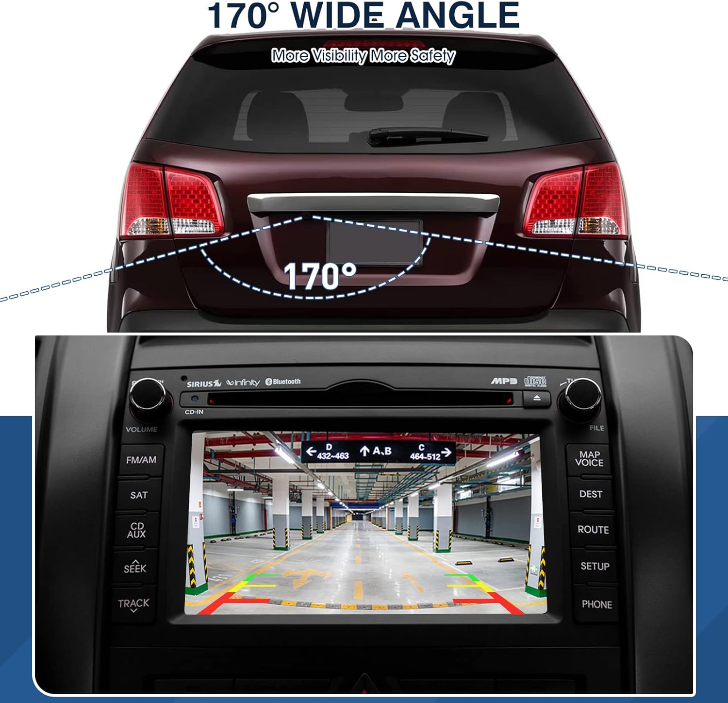 - [Clear Day and Night]: Backup Camera For Kia Sorento 2012 is made of high quality material and lens, support 170° wide vision and provides the driver with a clear and accurate color reproduction whenever in the day or night.