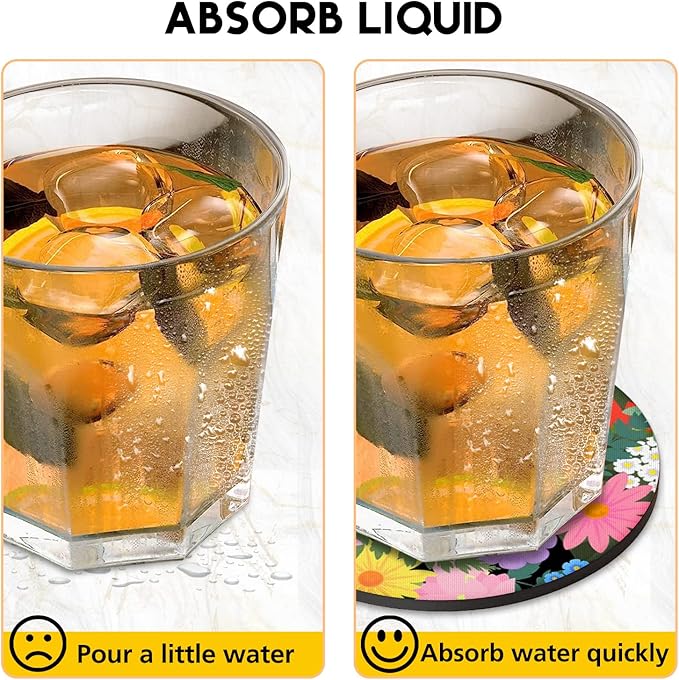 - 【Absorbent & Heat-resistant】 The coasters for drinks can absorb spilled liquid quickly. And heat resistant to protect your table from scalding. Available for all seasons.