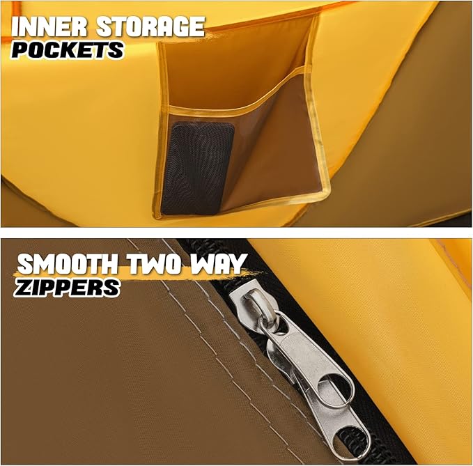 MoNiBloom Pop Up Tent 2 Person for Camping Waterproof Outdoor Easy Set Up Automatic Family Travel Tent, 2 Doors and Side Windows Instant Easy Popup Beach Tent with Carry Bag, Yellow