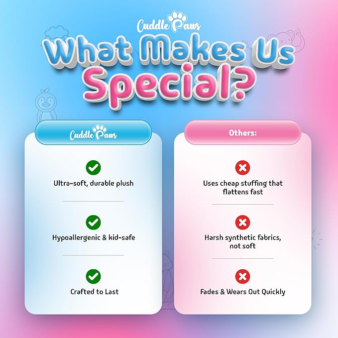 - Premium Quality & Safe Materials - Made with non-toxic, hypoallergenic materials, the Cuddle Paws Penguin Plush Pillow is safe for children (ages 3+) and plush enthusiasts of all ages. The ultra-soft outer fabric is gentle on the skin, while reinforced stitching ensures long-lasting durability. Unlike ordinary plush toys, this stuffed cat maintains its fluffiness and shape, providing a consistent cuddly experience. Easy to clean and low-maintenance, it’s built for years of love and snuggles.