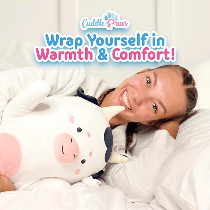 - Premium Quality & Safe Materials – Made with non-toxic, hypoallergenic materials, the Cuddle Paws Cow Print Plush Pillow is safe for children (ages 3+) and plush lovers of all ages. The ultra-soft outer fabric is gentle on the skin, while reinforced stitching ensures durability. Unlike ordinary plush toys, this stuffed bunny maintains its fluffiness and shape over time, providing a consistently cuddly experience. Easy to clean and low-maintenance, it’s built for years of love and snuggles.