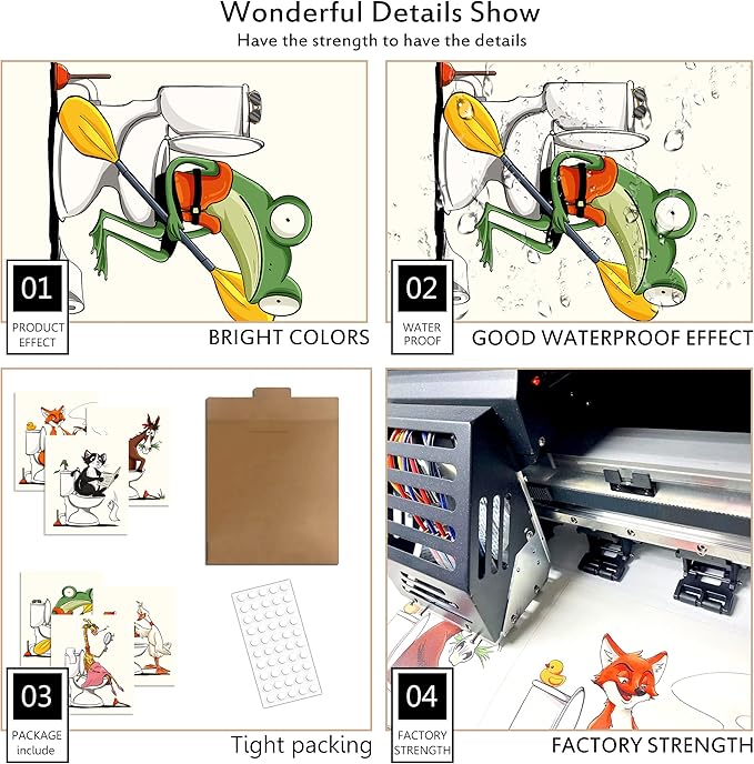 Bathroom Wall Art Animal Prints Toilet Decor Set of 6 Canvas Posters Cute Pictures Photos Bathroom Artwork Wall Colourful Funny Fox Cat Frog Goose Giraffe Horse in Toilet Illustration Wall Decor for