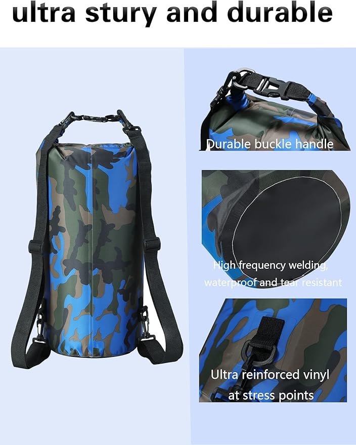 • Durable - Made by 0.02 inch thick wear-resistant material, suitable for outdoor activities, waterproof bag nicely adapts to all kinds of weather and environment