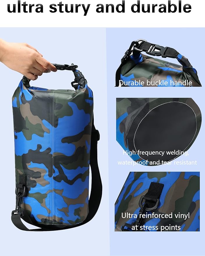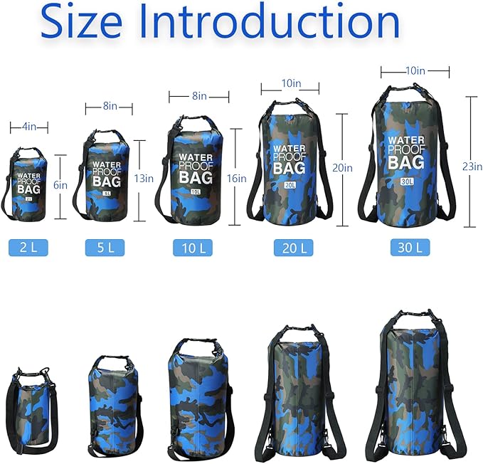 - SHOULDER STRAP: 2L&5L & 10L dry bags come with a single shoulder strap. 20L, and 30L waterproof backpack are equipped with double shoulder straps for added stability.