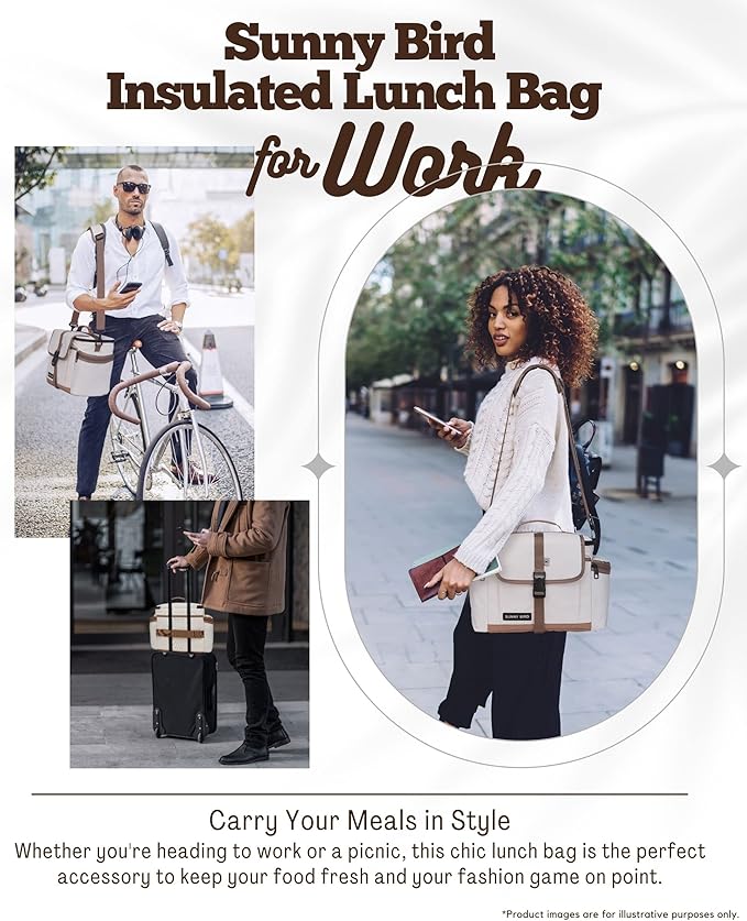 SUNNY BIRD 15L Insulated Lunch Bag with Foldable and Leakproof Design, Thermally Insulated, Shoulder Strap for Women, Men (Classic Ivory)