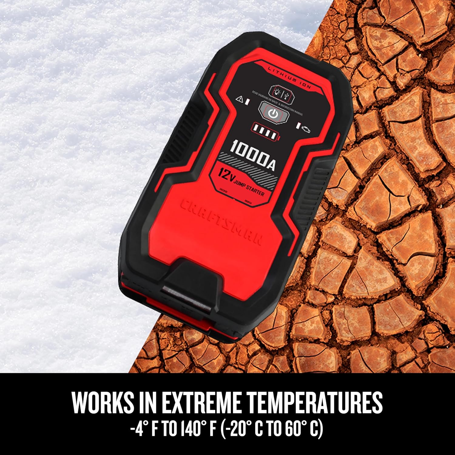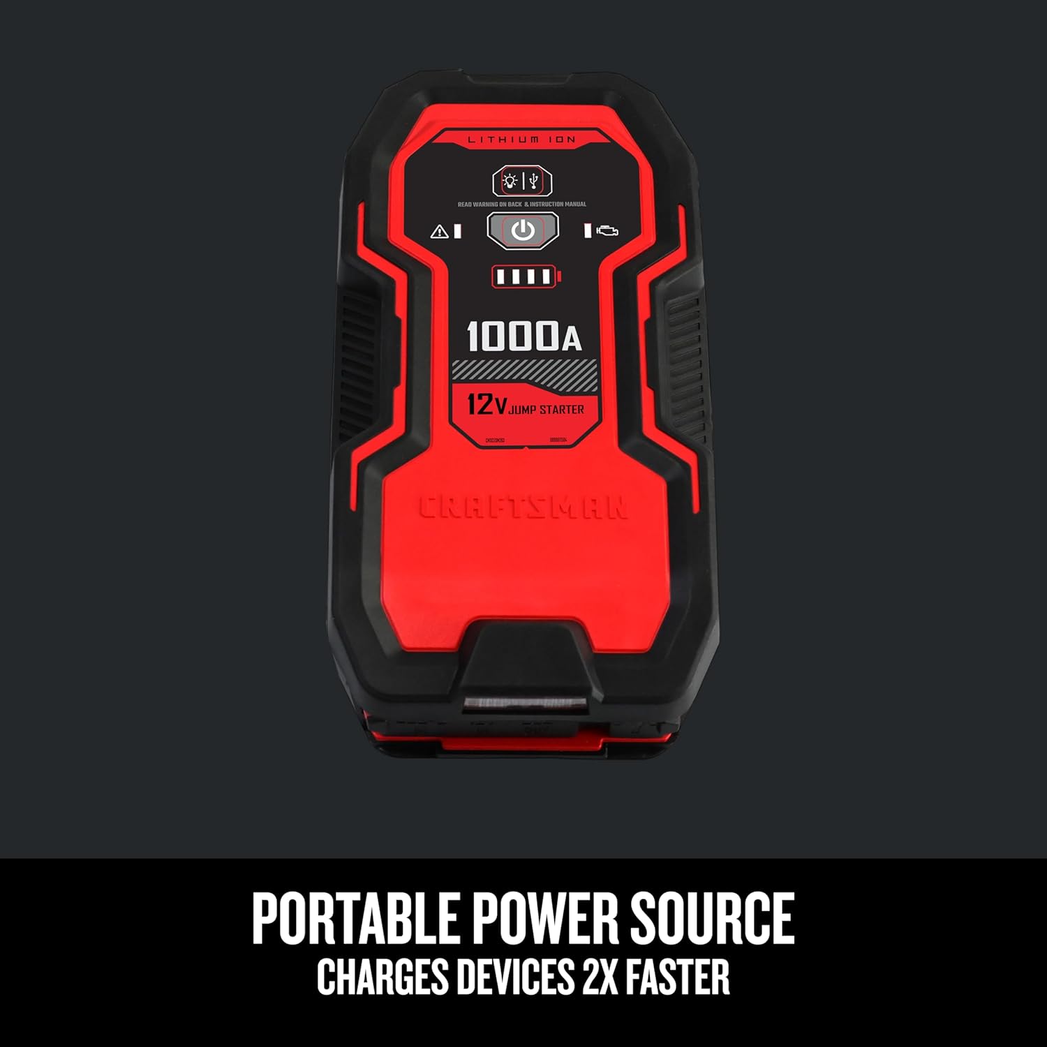 CRAFTSMAN Lithium Jump Starter and Portable Power Pack, CMXCESM263, 3-in-1, 2.4 Amp USB Port, LED Light, 1000 Amps, 12 Volt, for Motorcycle, Car, SUV, Truck, and Marine Batteries