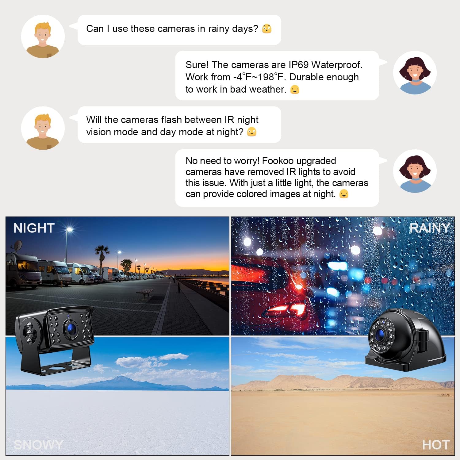 - High-quality Camera with Glass Lenses: IP69 waterproof cameras with CCD sensor provide you with clear color images. With high/low temperature resistance (-4℉-198℉) and IP69 Waterproof, it can work perfectly in any extreme weather, no longer afraid of hot or cold weather. The hard metal housing makes the camera serve longer for you.