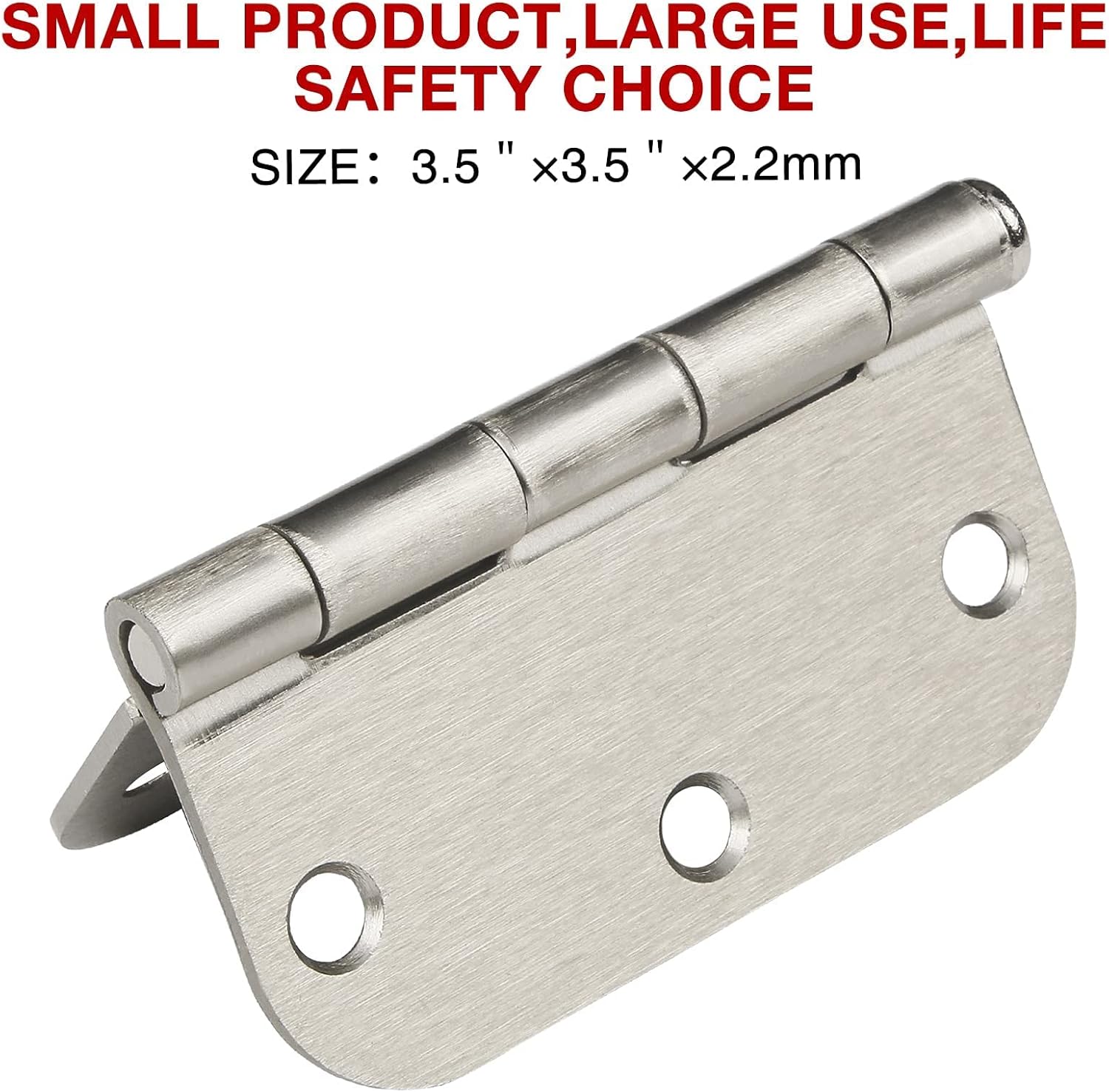12 Pack Brushed Nickl Door Hinges 3.5 Inch x3-1/2 5/8 Radius Round Interior Hinge 3 ½" Satin Silver Heavy Duty Steel Iron Hardware for Bifold Standard Doors Home House Decor Accessories Kits