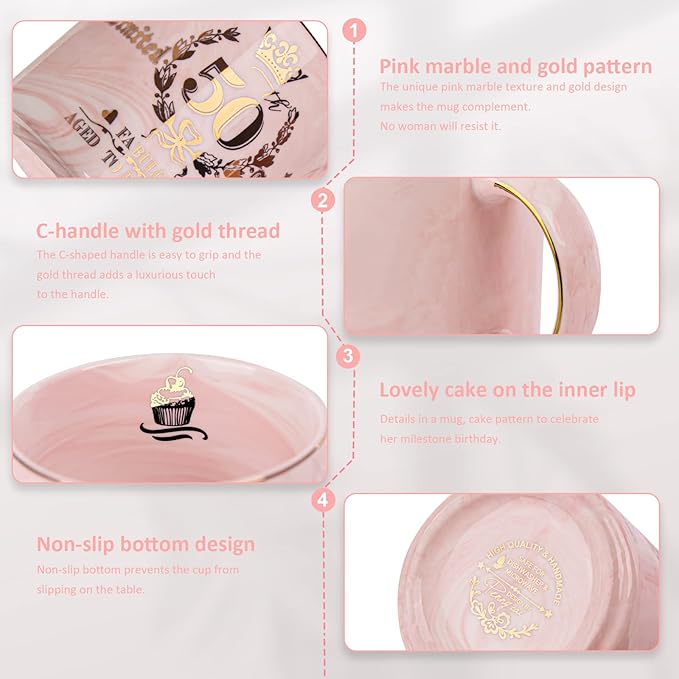 50th Birthday Gifts for Women Her, Fabulous 50 Aged to Perfection, 14oz Gold Pattern Coffee Mug, Cool Gifts Idea for Turning 50 Year old Mom, Wife, Daughter, Sister, Friends, Aunt, Nice Gift Boxed