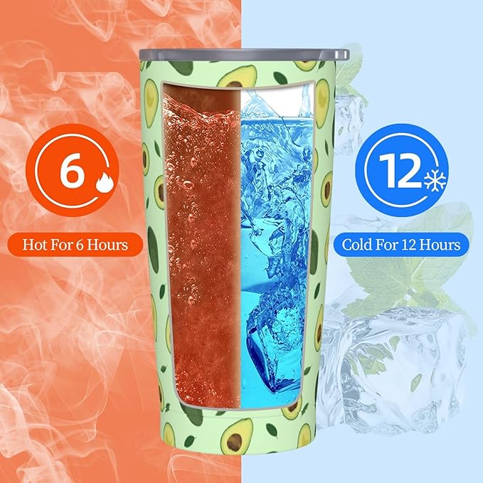 - [Premium Stainless Steel Mug]: 20 Oz avocado travel mug with electro polished inside. Ensure your cup is unbreakable, rust-proof, non-toxic and non-hazardous so you can have a clean drink every time.